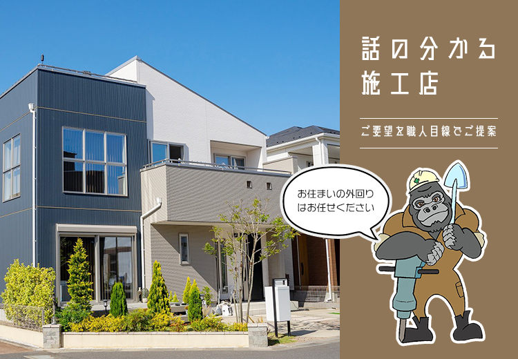 外構工事に携わって20年以上となりますが、これからも培った技術を存分に活かし、外構・エクステリアに精通した職人目線の提案施工で、利便性・機能性・耐久性を兼ね備えた外回り空間を実現いたしますのでご安心ください。