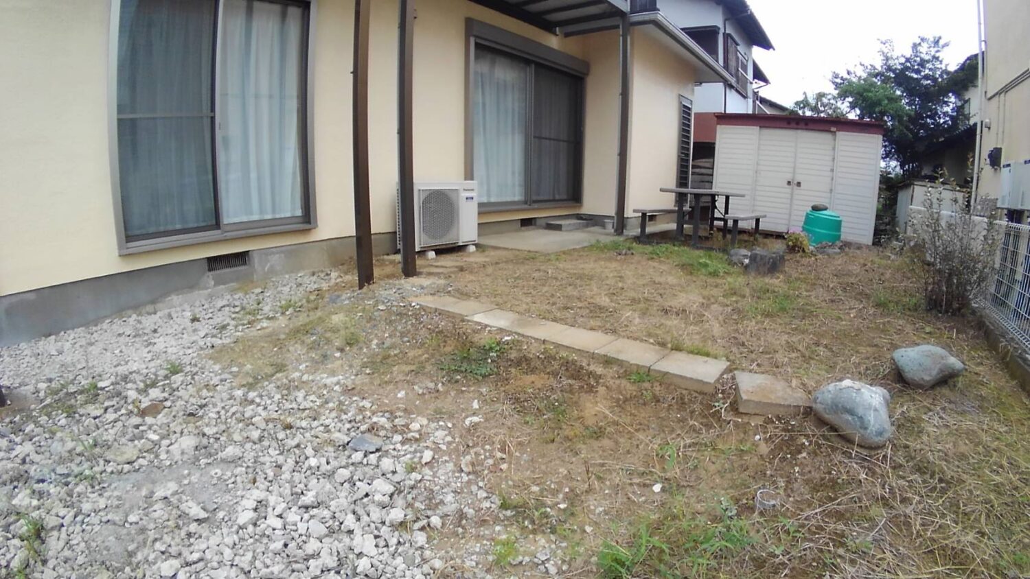 掃き出しの所にあったエアコンの室外機は