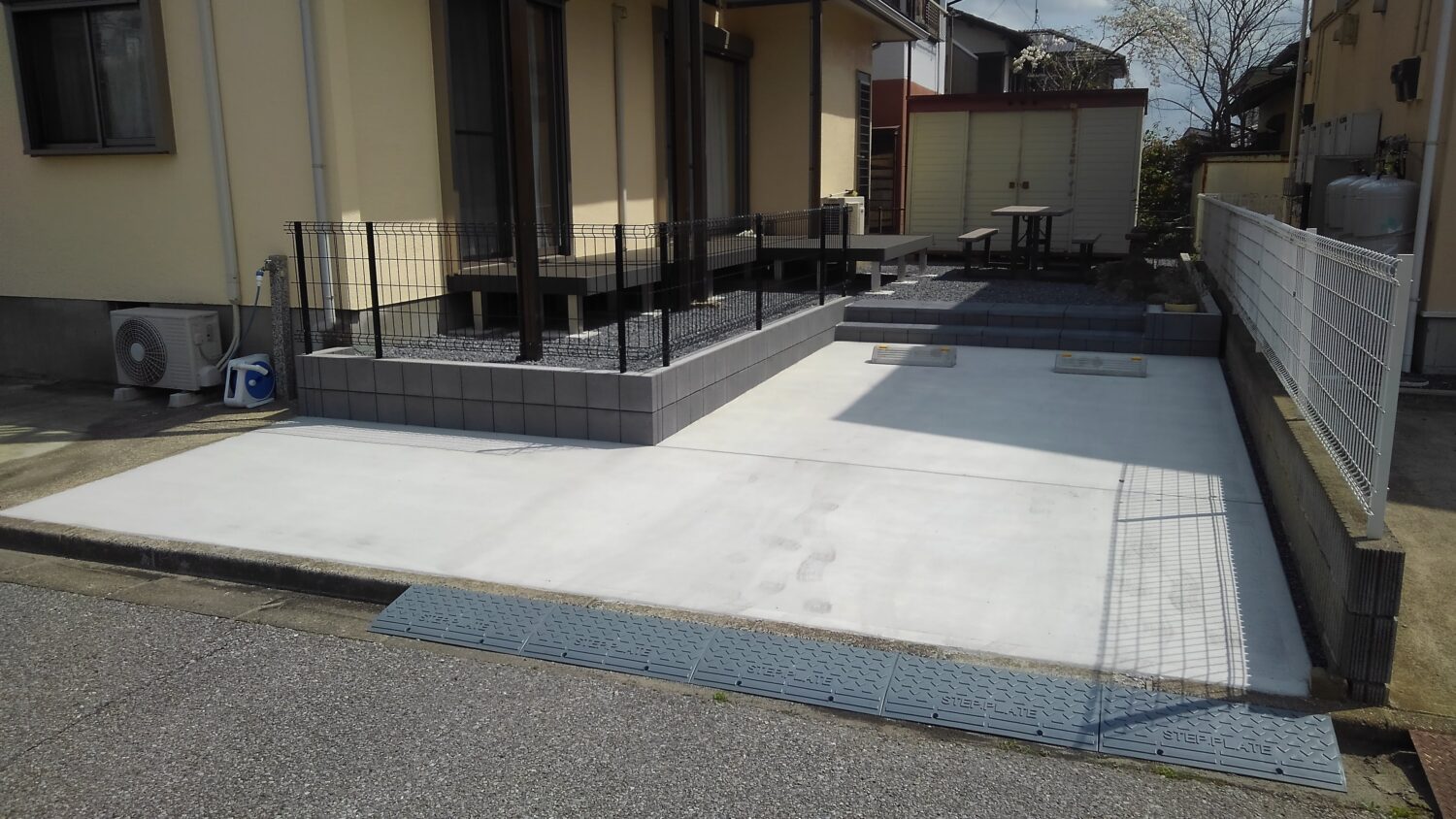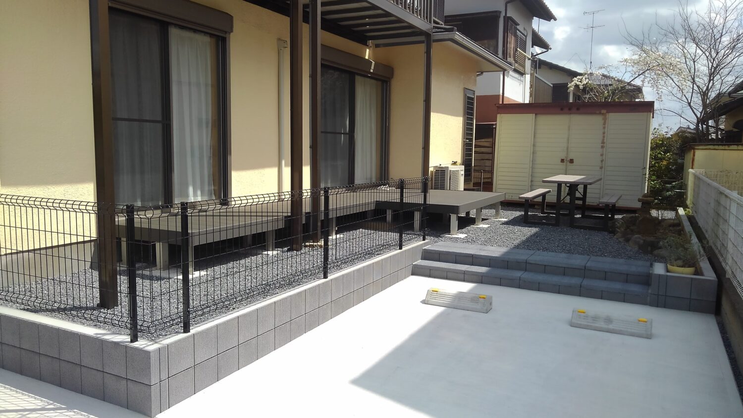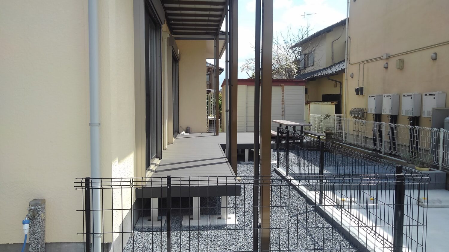 ウッドデッキとメッシュフェンスも設置して
