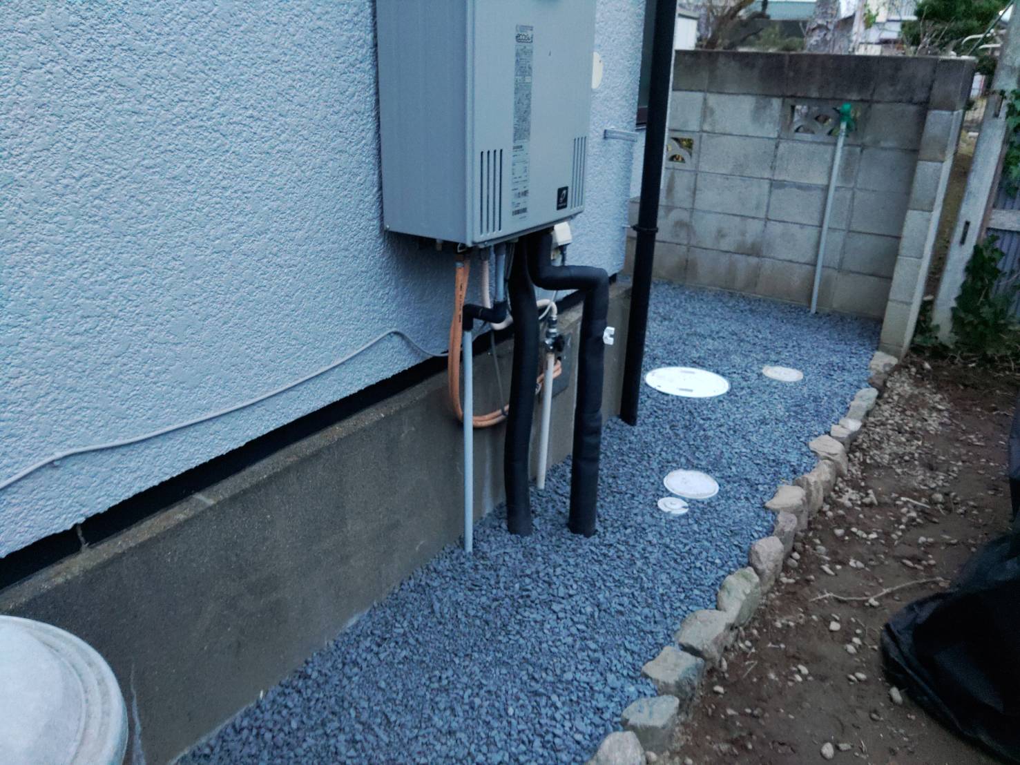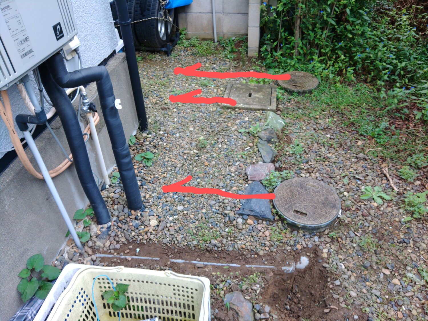 隣地境界ぎりぎりにあった汚水桝も