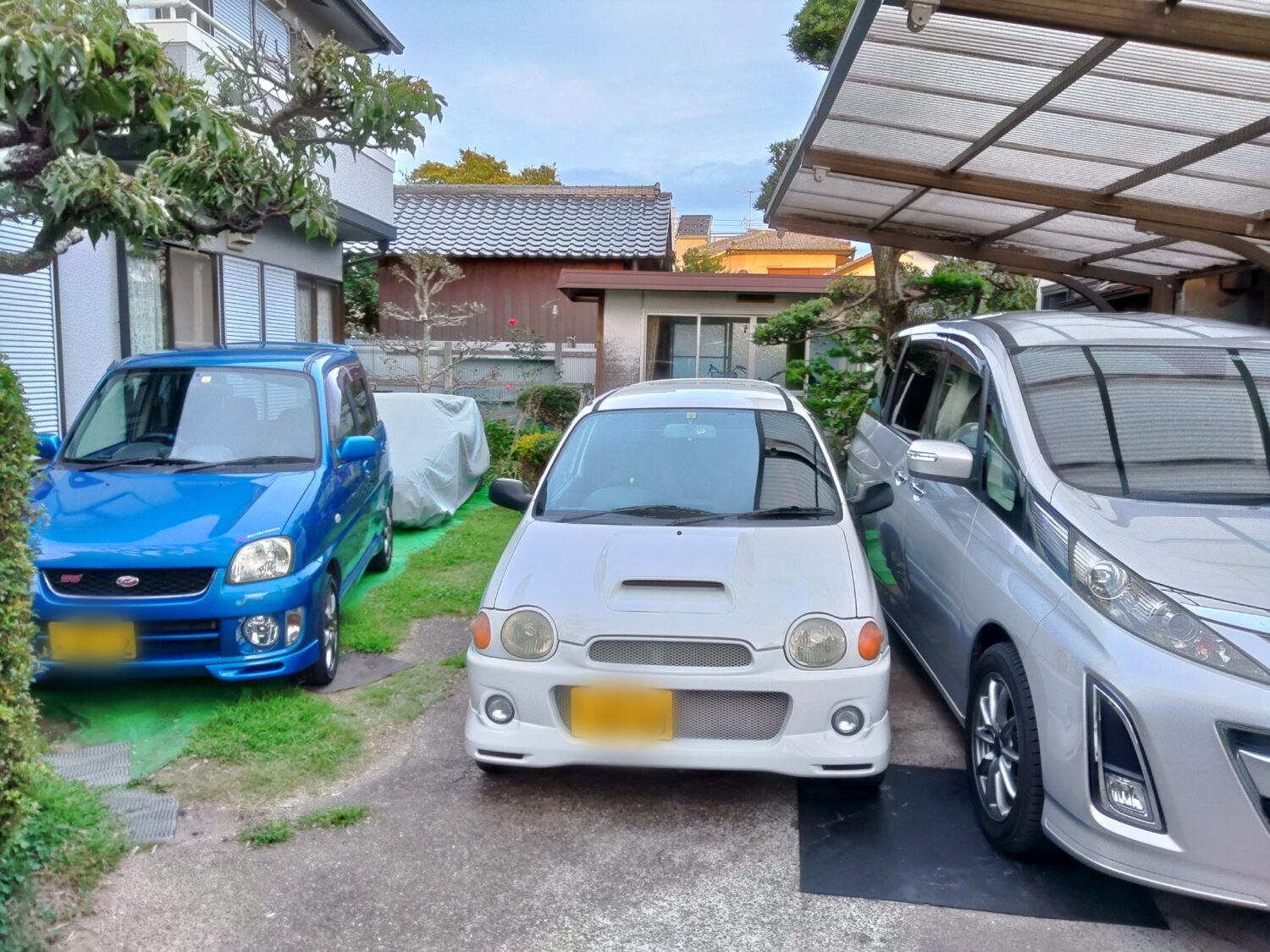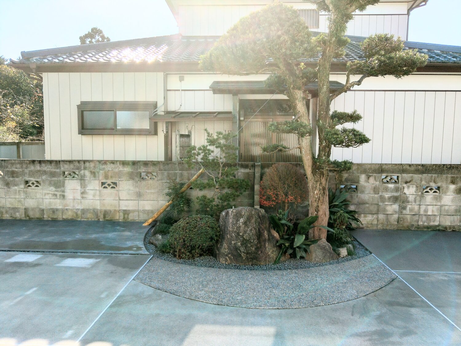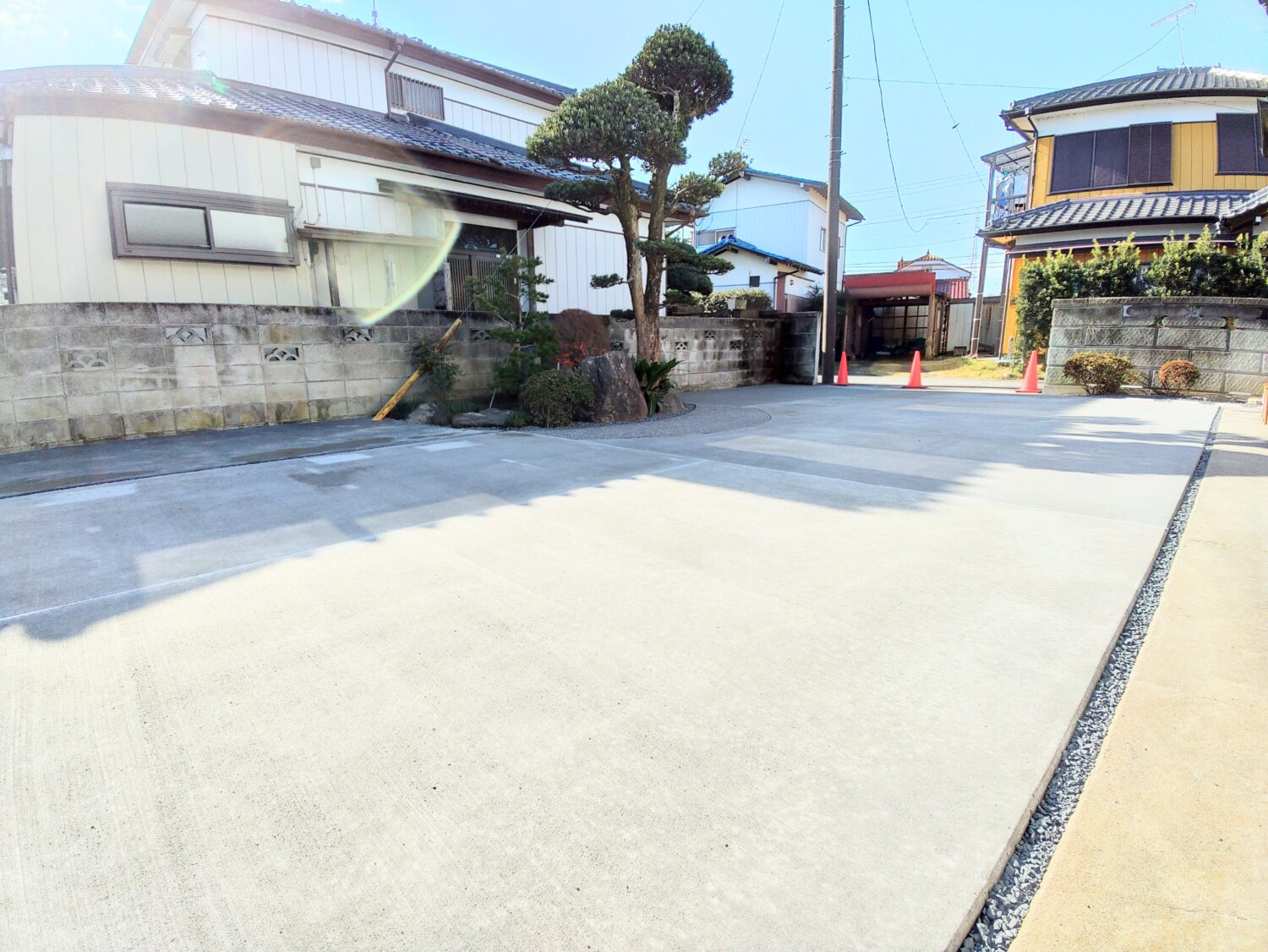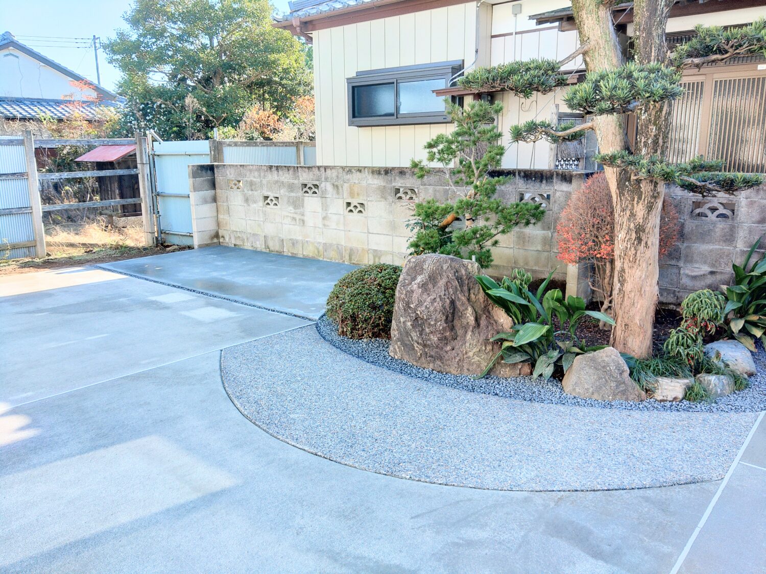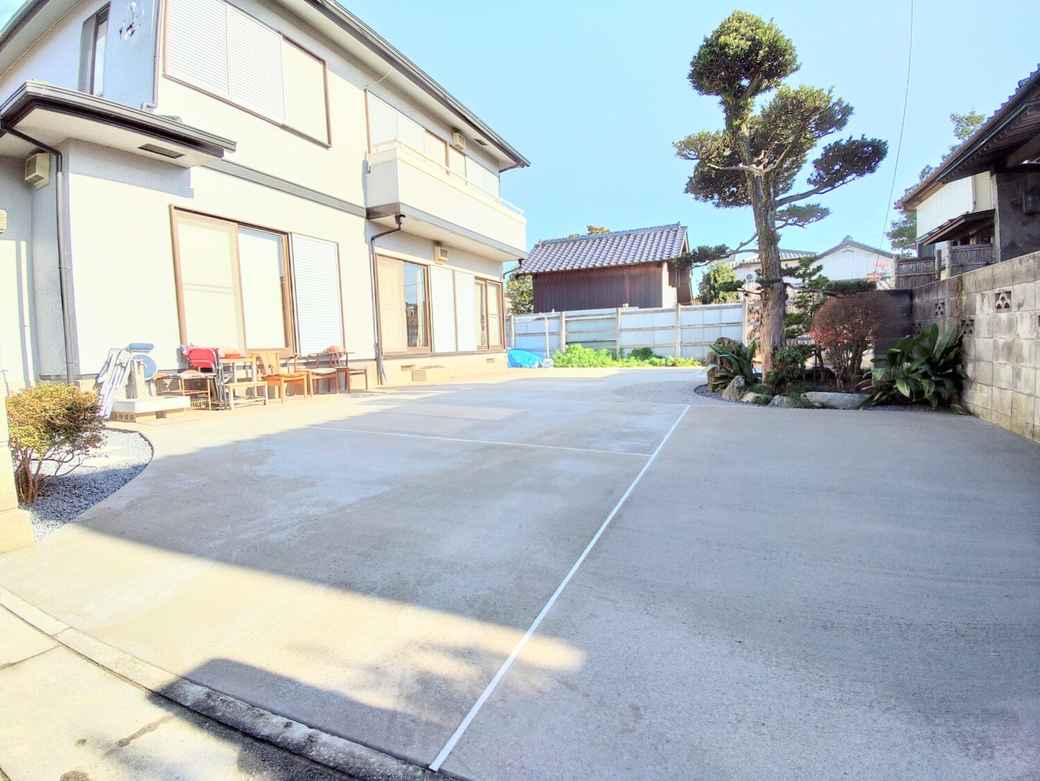 点在していた植木、植栽、プレハブにより4台ほどある車の出し入れに苦労されていたそうですが、プレハブを撤去し、植木や植栽は一定の場所に移植したことで、コンクリートの面積を5~6台駐車できるほどまで広くする事ができました