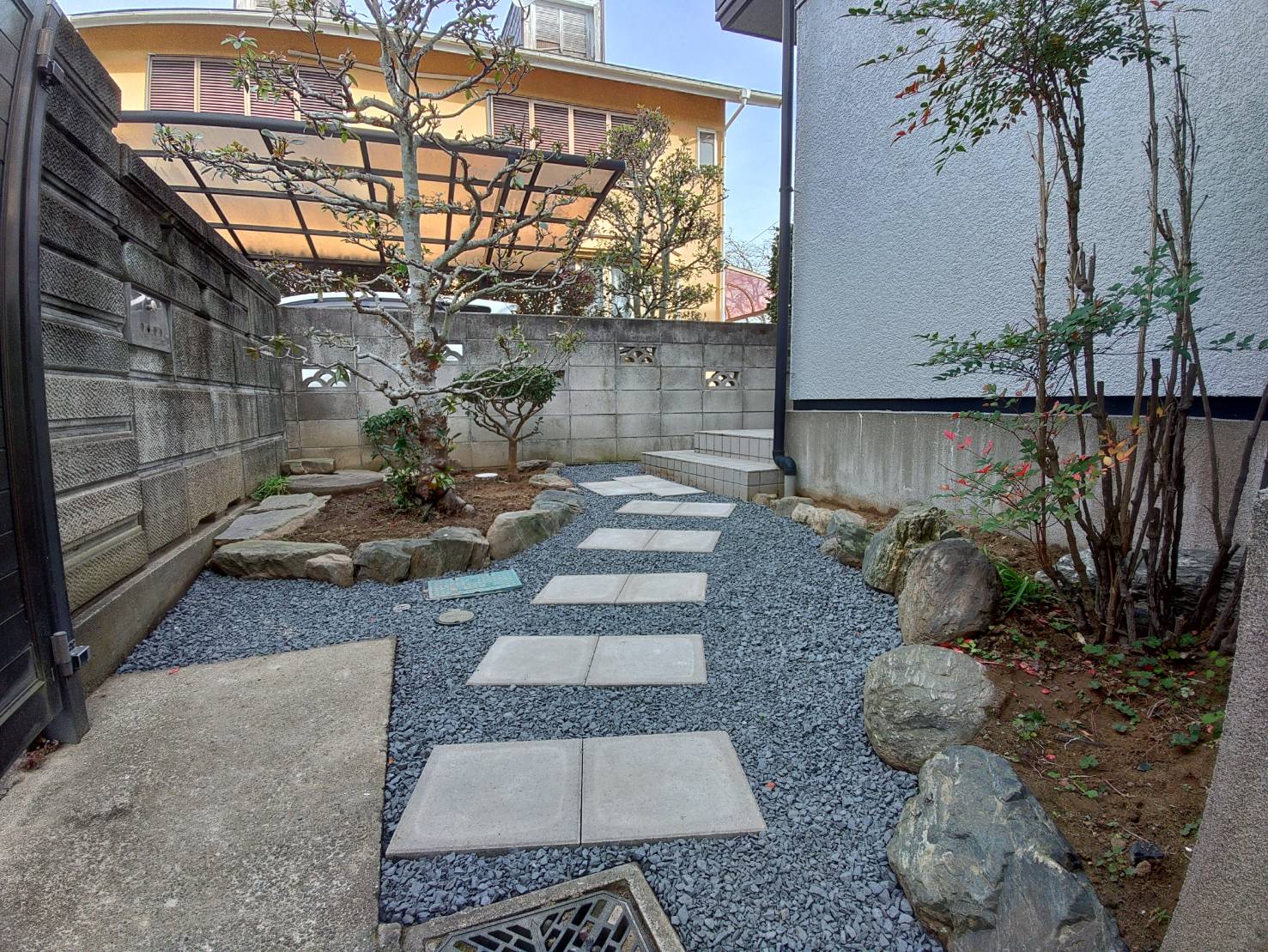平板と砂利敷きで足元も汚れる事なくスッキリ