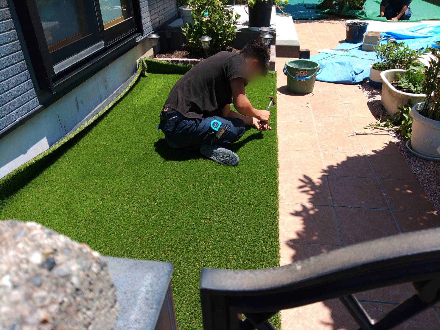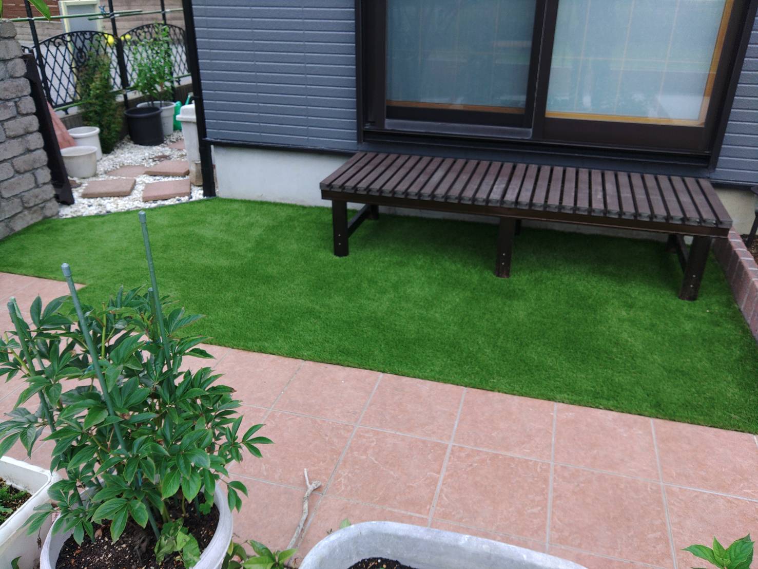 庭に人工芝の施工をします