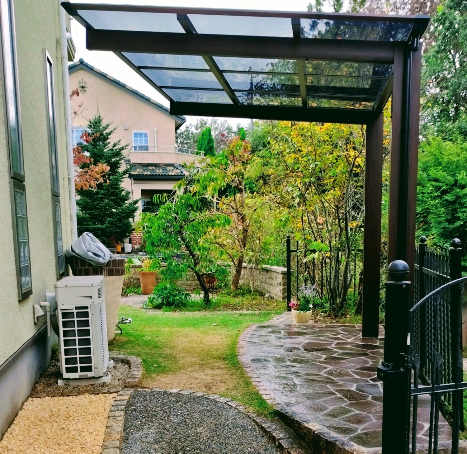 龍ヶ崎市 石張り&サイクルポート取り付け工事