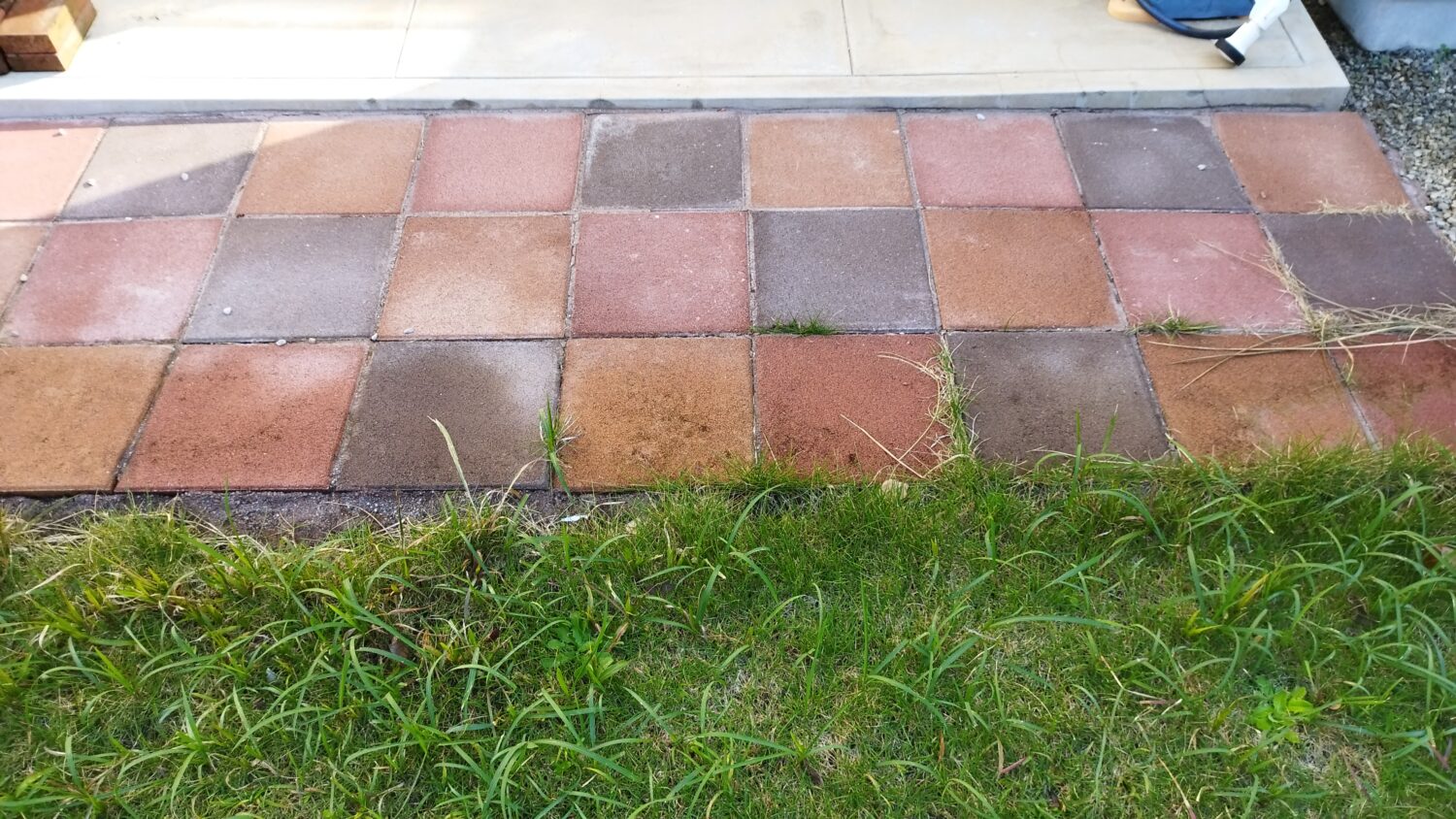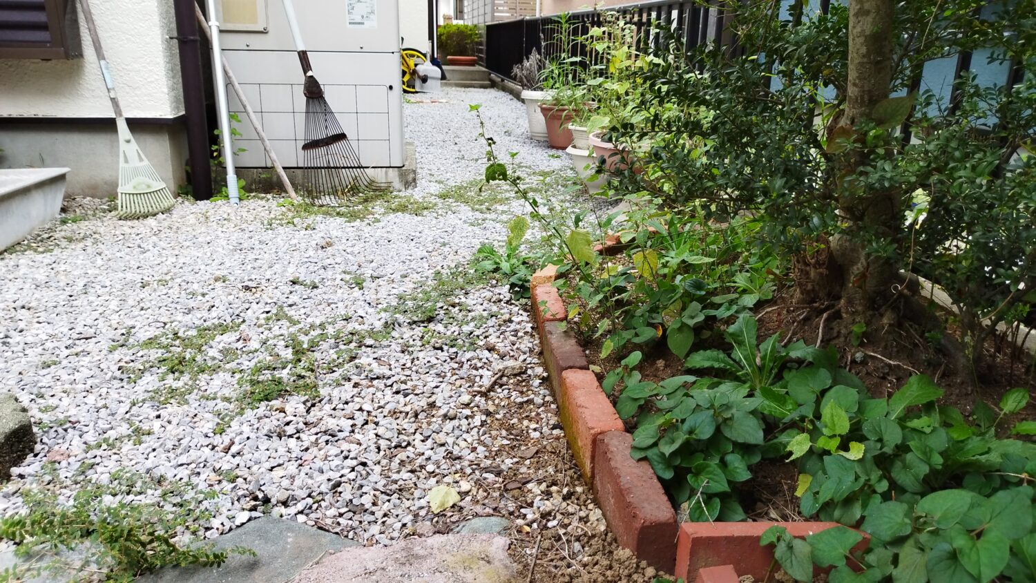 施主様がお使いになっていたレンガと平板を再利用しながらのリフォーム工事です