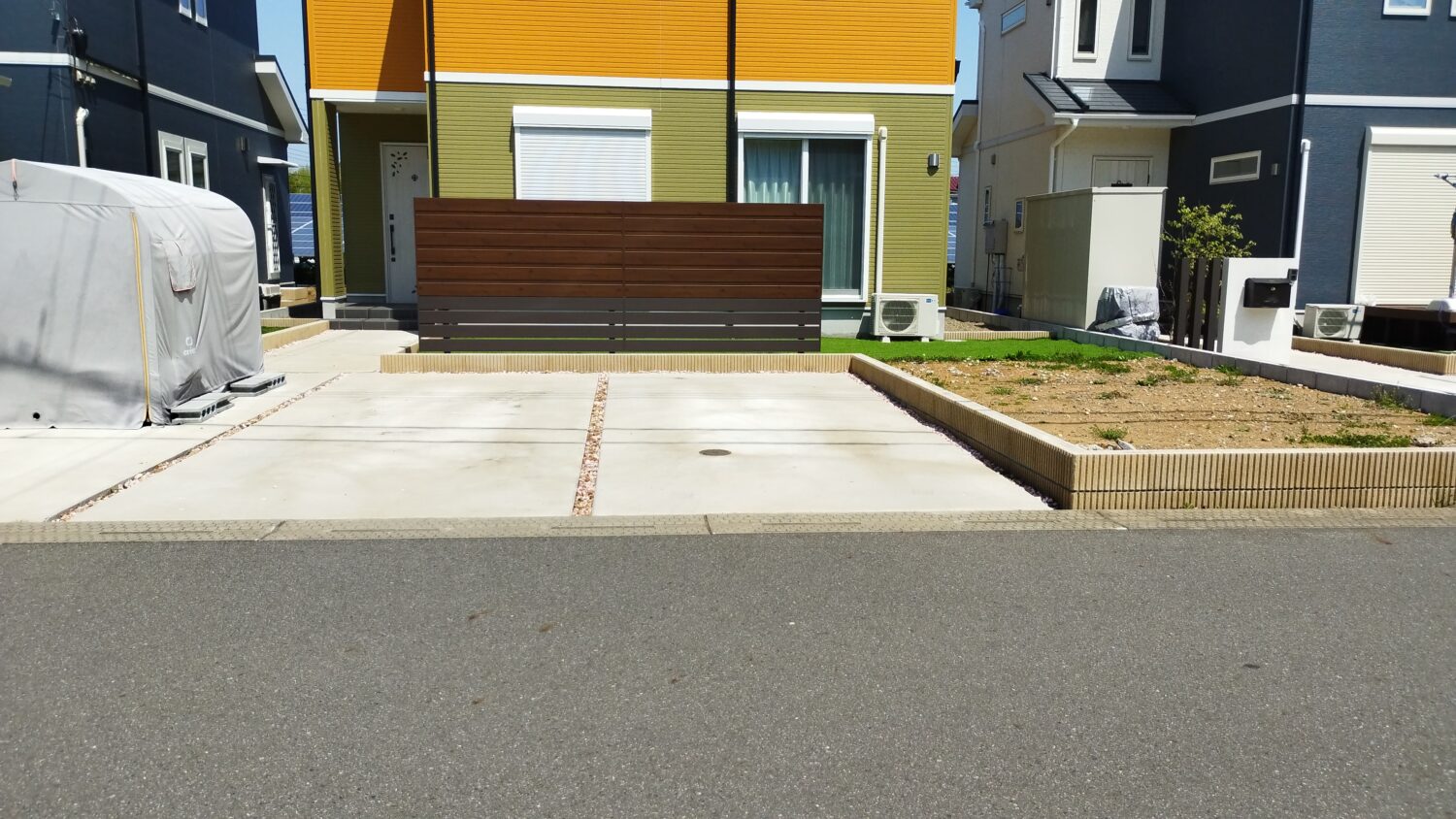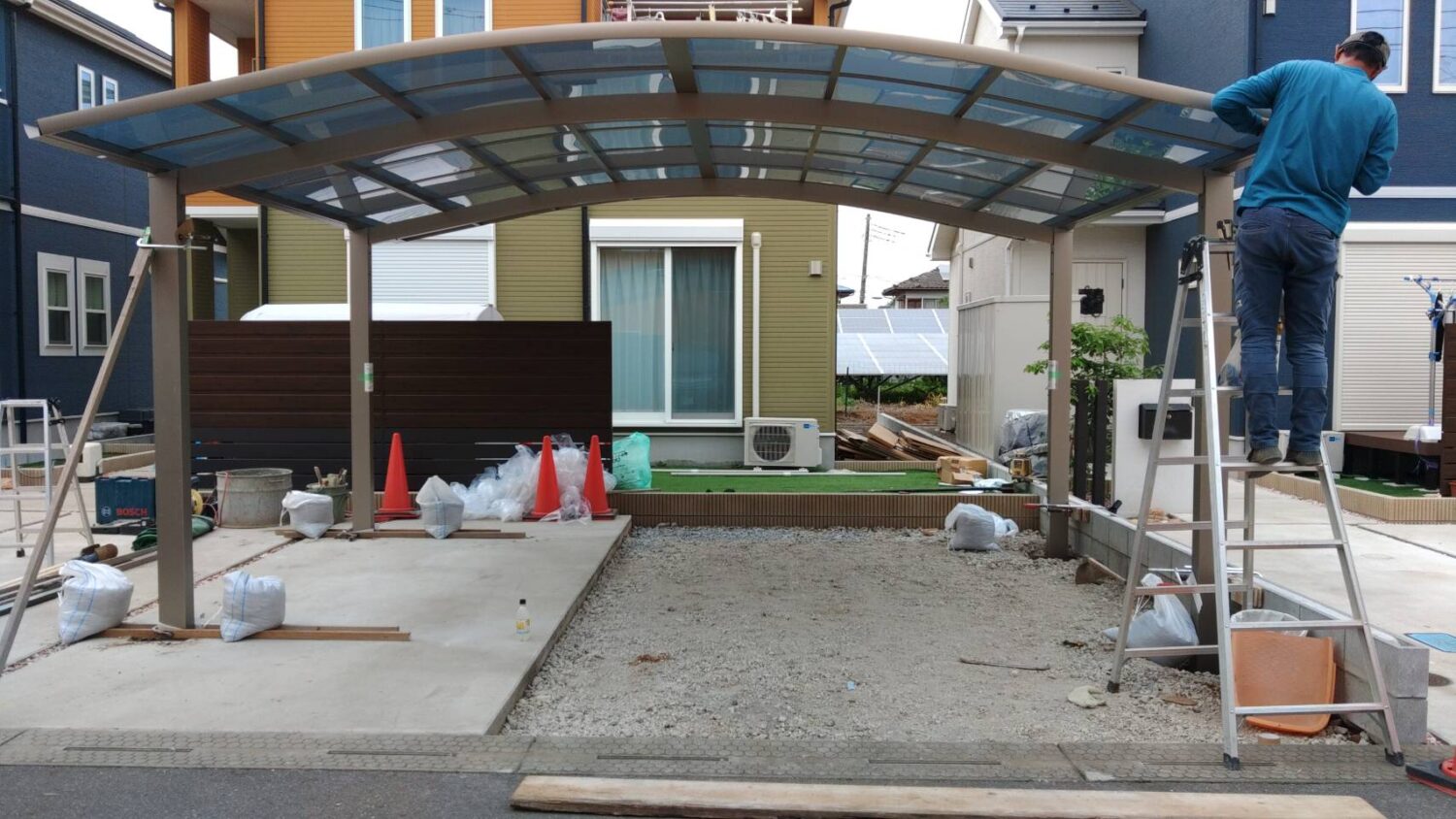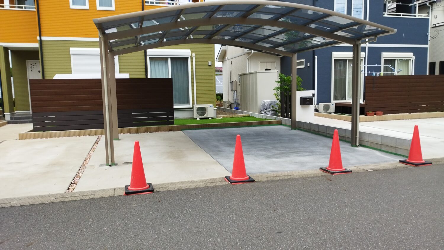 スタンダードなポリカーボネートは紫外線を100%カットしますが、今回設置されたカーポートのポリカーボネートは、暑さの原因となる赤外線の熱量も半分カットしてくれるタイプのものなので、屋根の下に入るとひんやり涼しく感じます。