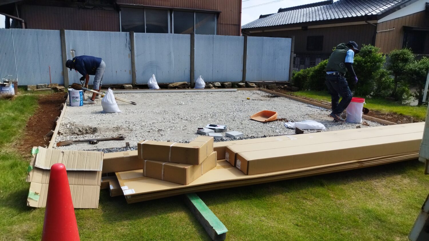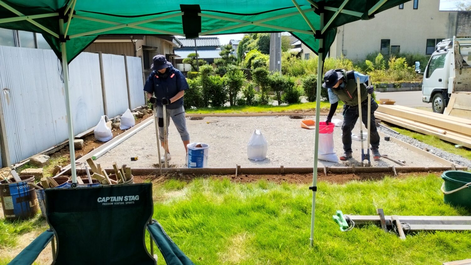 砕石を敷いて カーポートの準備