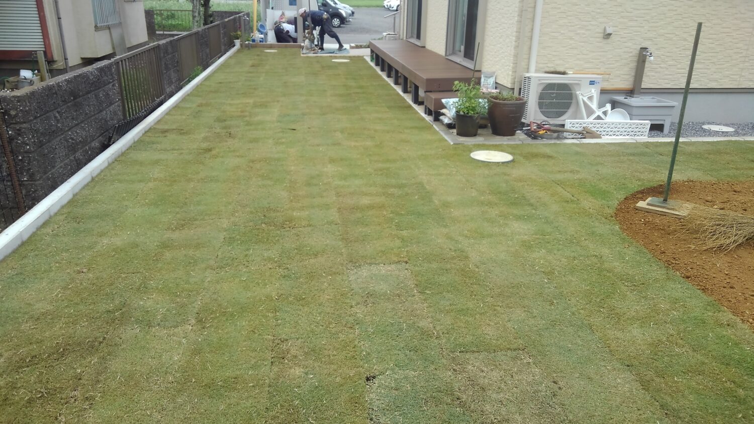 まずはお庭に芝張りと家庭菜園スペースを作る為